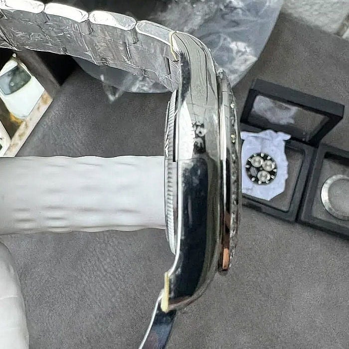 印刷、彫刻が施された文字盤は、本物のロレックスのものと見分けがつきません。