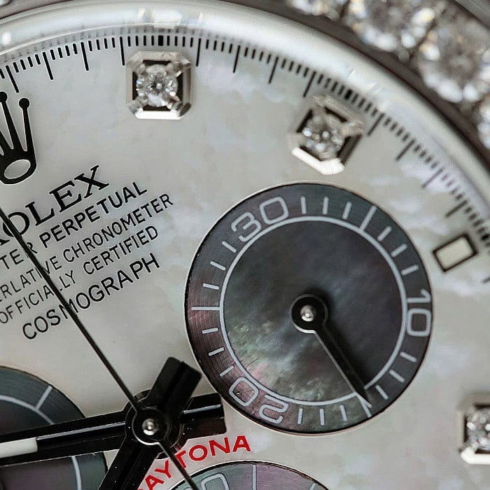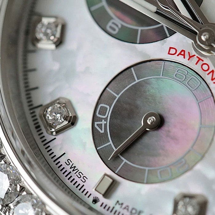 特別に厳しい素材の選別プロセスの成果でして、どちらのマザーオブパールもロレックスの職人により細心の注意を払って取り扱われ、