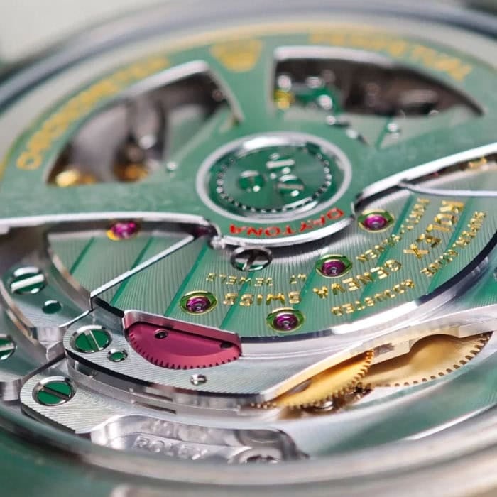 今や伝説的存在となったこのクロノグラフは経過時間と平均時速を計測できるツールであり、この貴石入りモデルには、