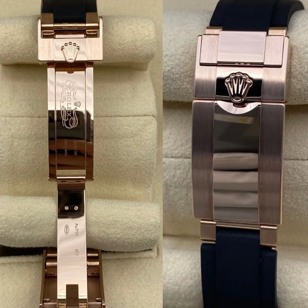内側には快適性を高めるクッションがあり、誤って開くのを防ぐセーフティキャッチ付オイスターロッククラスプや、