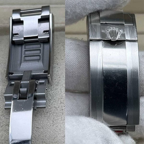 内側には快適性を高めるクッションがあり、誤って開くのを防ぐセーフティキャッチ付オイスターロッククラスプや、