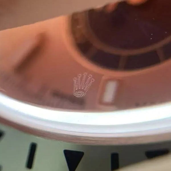 風防:6時の位置にレーザー加工された小さなロレックス王冠