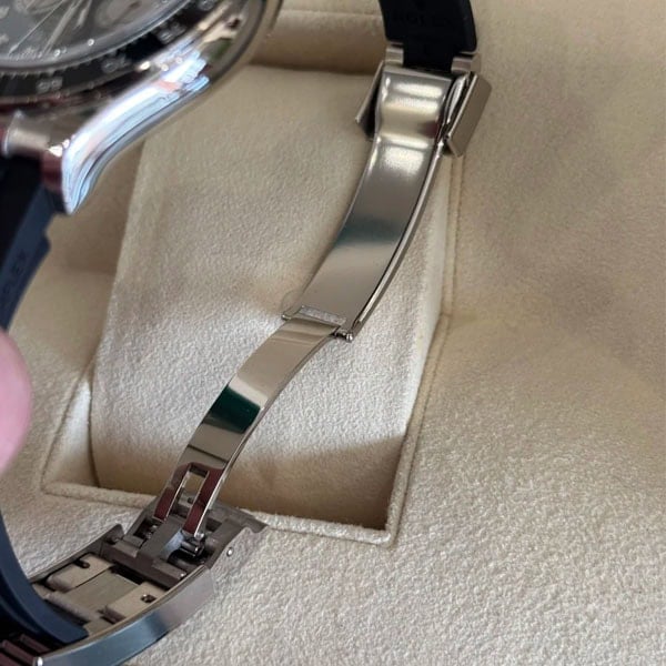 1/8 秒まで計測可能なクロノグラフ、積算計(30 分/3 時位置と 12 時間/9 時位置)。